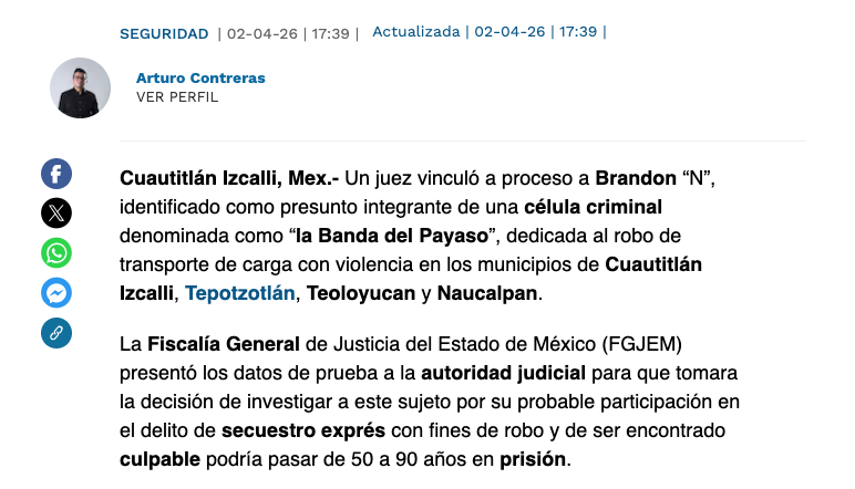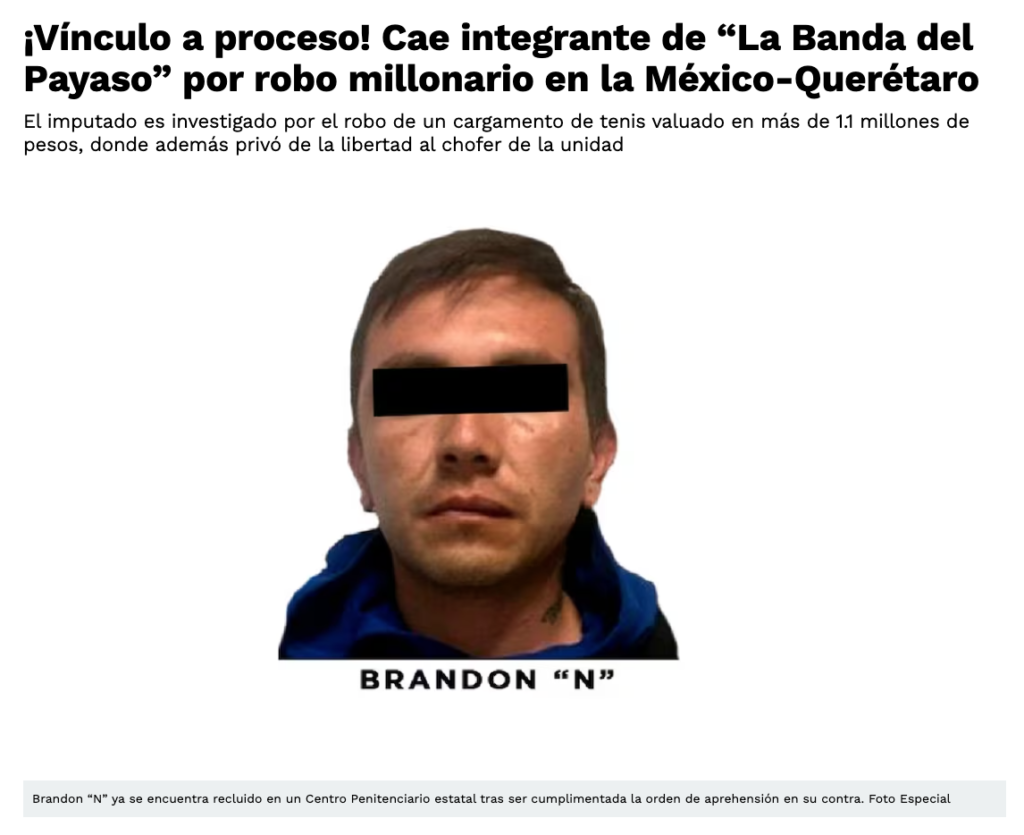• https://www.eluniversaledomex.com.mx/seguridad/vinculo-a-proceso-cae-integrante-de-la-banda-del-payaso-por-robo-millonario-en-la-mexico-queretaro/