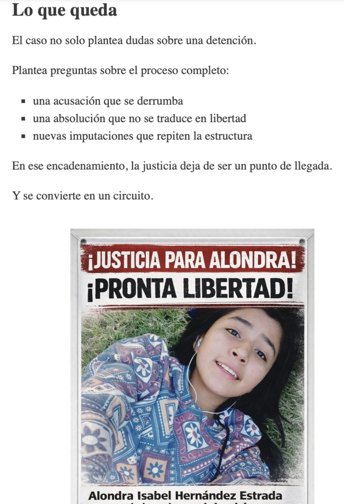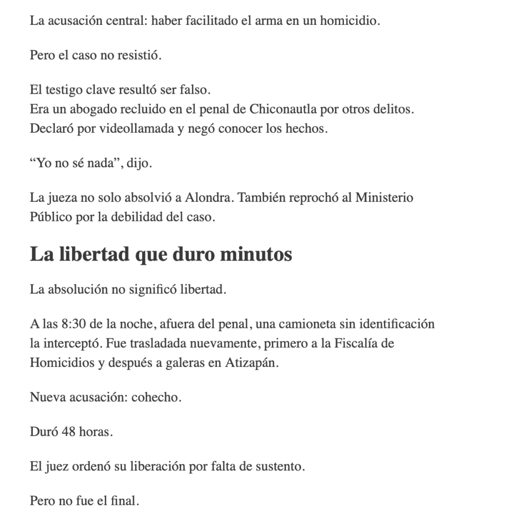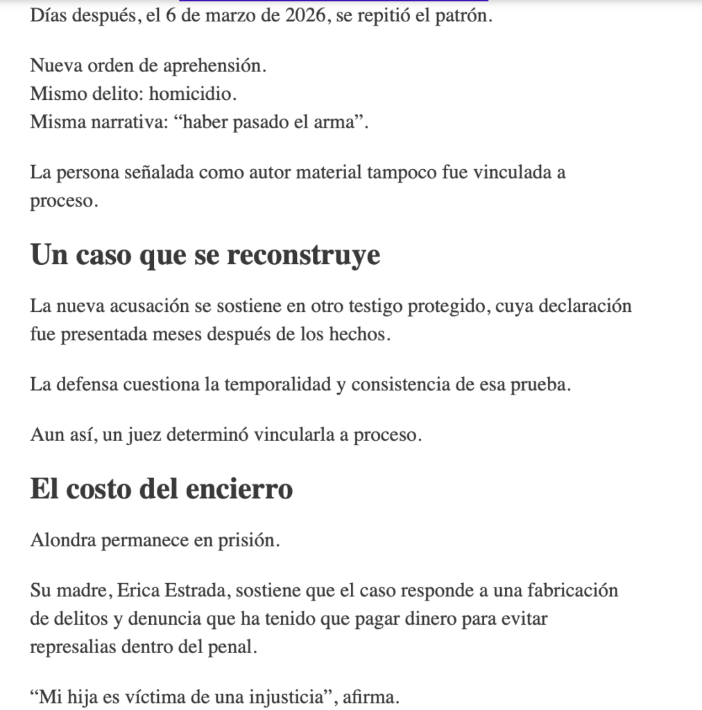 Absolución ignorada y nueva detención marcan caso de Alondra en Edomex