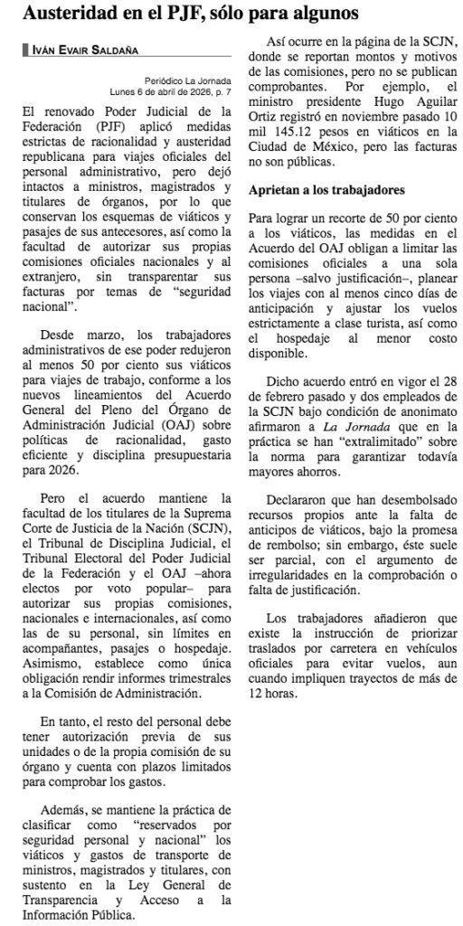 • https://www.jornada.com.mx/noticia/2026/04/06/politica/austeridad-en-el-pjf-solo-para-algunos