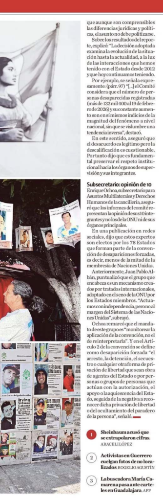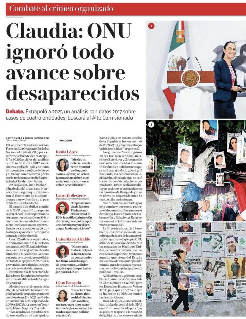 El Comité contra la Desaparición Forzada de la Organización de las Naciones Unidas (ONU) para su informe sobre México “extrapoló” a 2025 las cifras del análisis que hizo de 2009 a 2017 sobre cuatro estados del país y no tomó en cuenta los cambios de leyes y el trabajo con colectivos, por lo que lo rechazamos, explicó la presidenta Claudia Sheinbaum.