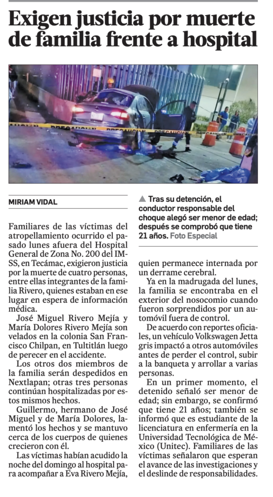 - https://lajornadaestadodemexico.com/familiares-de-fallecidos-atropellamiento-hospital-de-tecamac-exigen-justicia/
