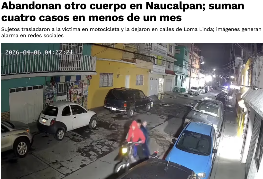 • https://www.eluniversal.com.mx/metropoli/video-exhibe-abandono-de-cuerpo-en-naucalpan-suman-cuatro-casos-en-menos-de-un-mes/
