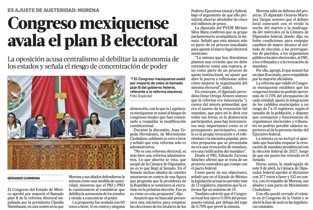 - https://lajornadaestadodemexico.com/congreso-del-edomex-avala-plan-b-electoral-morena-impone-austeridad-frente-a-criticas-de-centralismo/