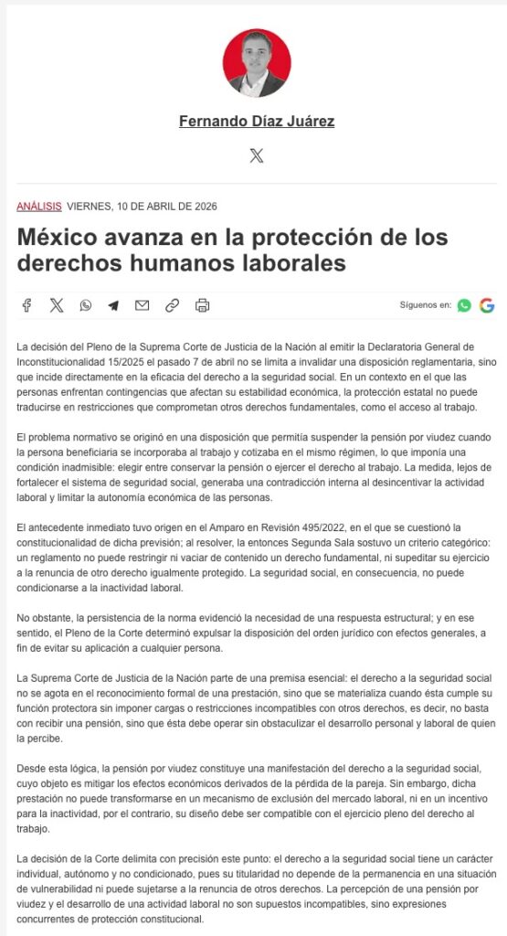México avanza en la protección de los derechos humanos laborales – Fernando Díaz Juárez