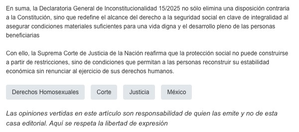 La decisión del Pleno de la Suprema Corte de Justicia de la Nación al emitir la Declaratoria General de Inconstitucionalidad 15/2025 el pasado 7 de abril no se limita a invalidar una disposición reglamentaria, sino que incide directamente en la eficacia del derecho a la seguridad social. En un contexto en el que las personas enfrentan contingencias que afectan su estabilidad económica, la protección estatal no puede traducirse en restricciones que comprometan otros derechos fundamentales, como el acceso al trabajo.