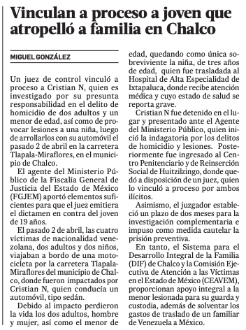 - https://lajornadaestadodemexico.com/justicia-para-la-familia-venezolana-en-chalco-vinculan-a-proceso-al-conductor-responsable/