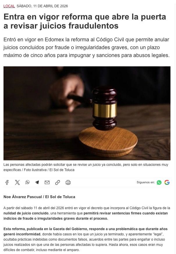 - https://oem.com.mx/elsoldetoluca/local/entra-en-vigor-reforma-que-abre-la-puerta-a-revisar-juicios-fraudulentos-29424823