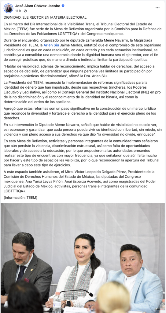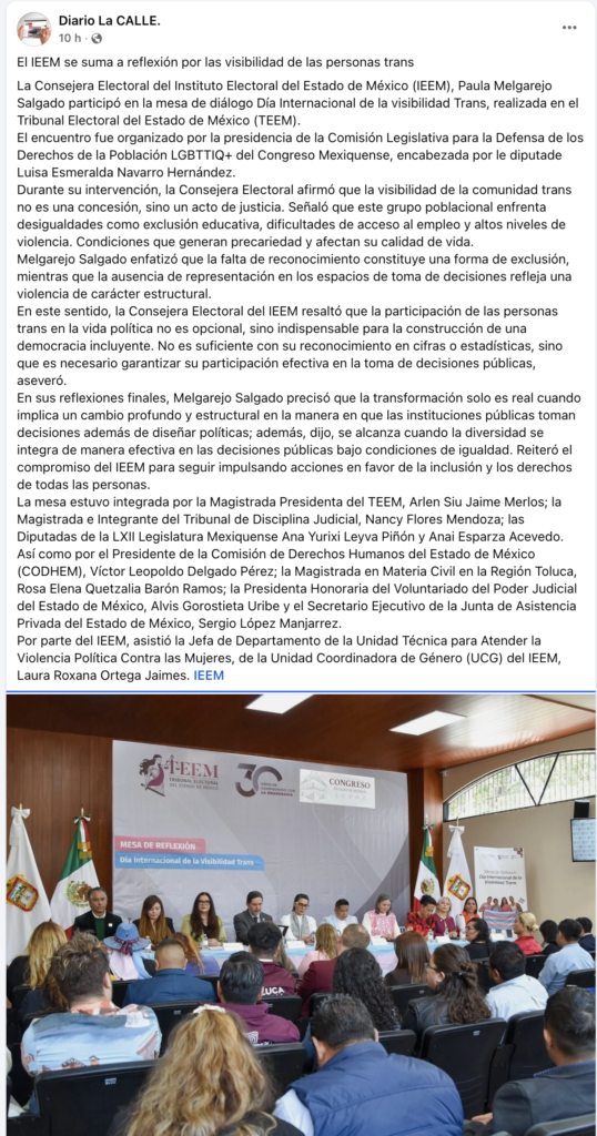 El IEEM se suma a reflexión por las visibilidad de las personas trans