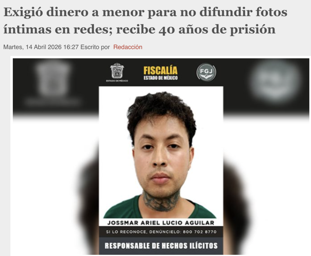 - https://www.digitalmex.mx/seguridad/story/66486/exigio-dinero-menor-para-no-difundir-fotos-intimas-redes-recibe-40-anos-prision