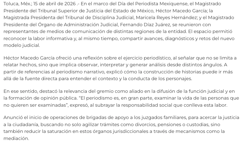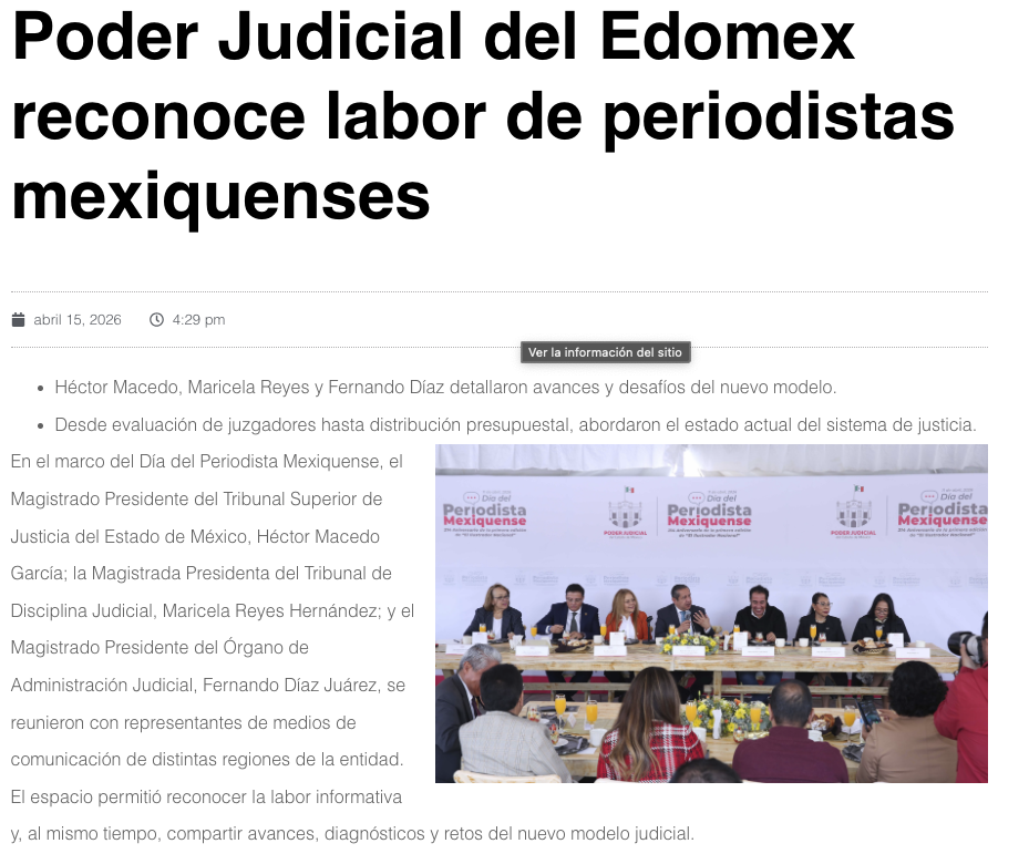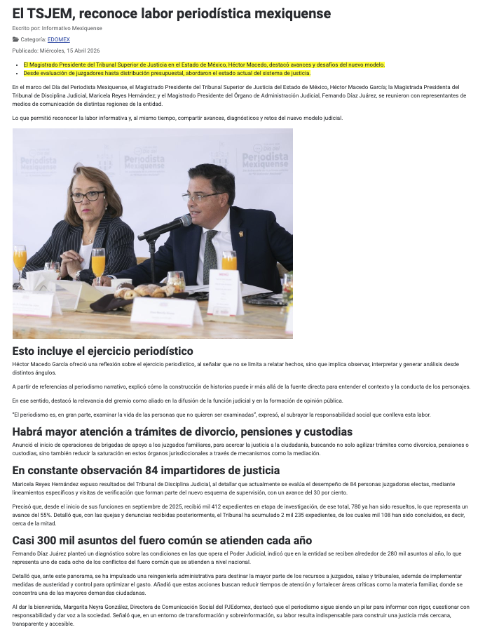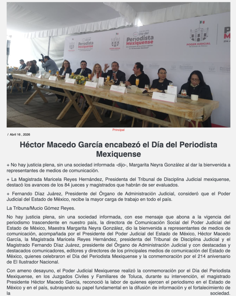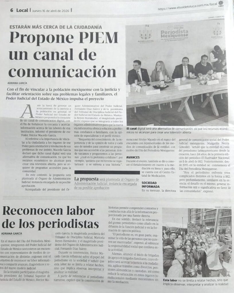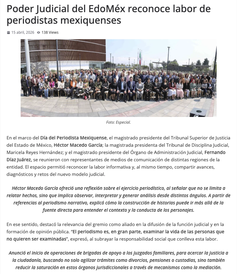 - https://edomexahora.com/2026/04/15/poder-judicial-del-edomex-reconoce-labor-de-periodistas-en-su-dia-son-la-voz-del-ciudadano/