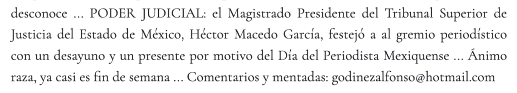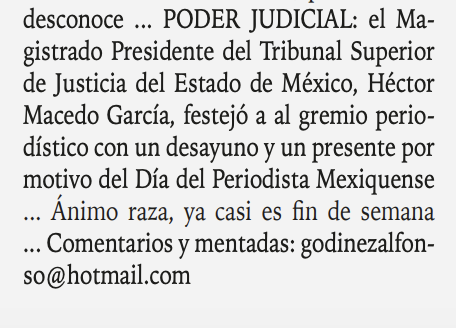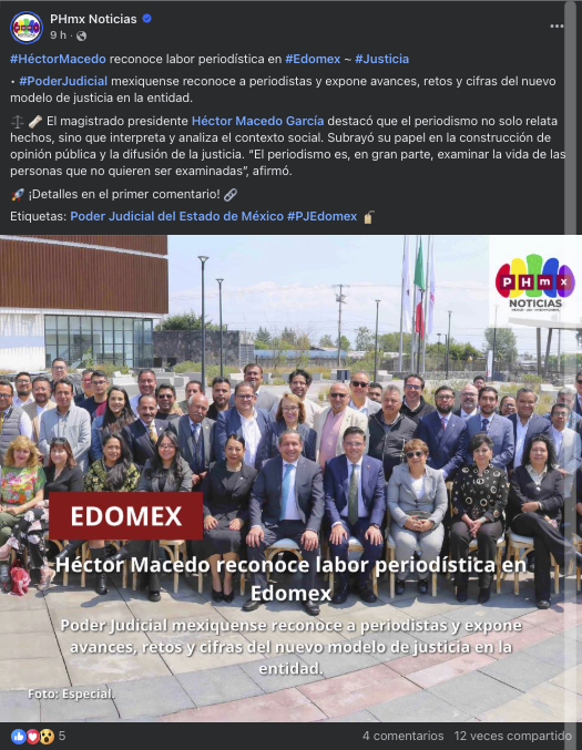 - https://www.facebook.com/PHmxNoticias/posts/h%C3%A9ctormacedo-reconoce-labor-period%C3%ADstica-en-edomex-justicia-poderjudicial-mexiqu/1096337756892976/