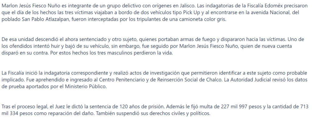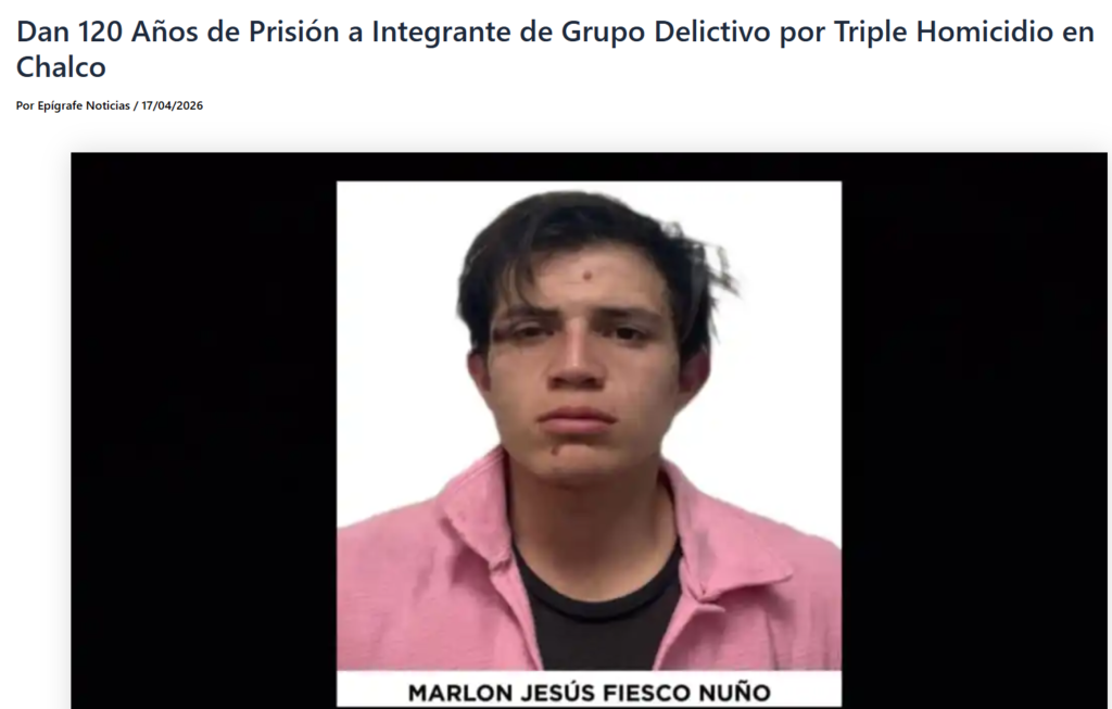 - https://reporterosenmovimiento.com/2026/04/17/fiscalia-edomex-obtiene-sentencia-de-condena-de-120-anos-de-prision-por-triple-homicidio-contra-integrante-de-grupo-delictivo-con-origenes-en-jalisco/