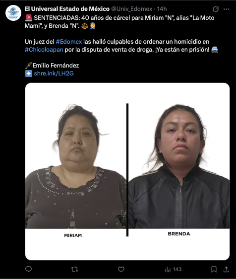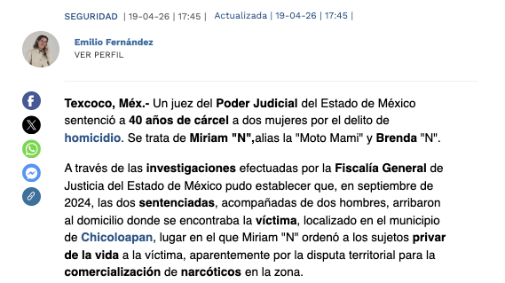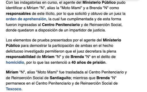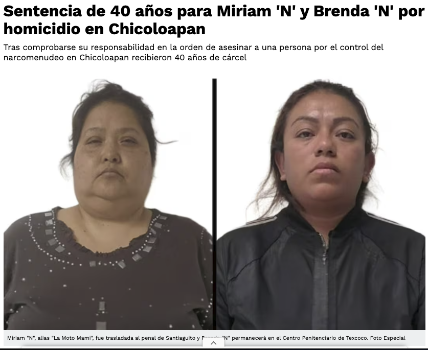 - https://www.eluniversaledomex.com.mx/seguridad/sentencia-de-40-anos-para-miriam-n-y-brenda-n-por-homicidio-en-chicoloapan/