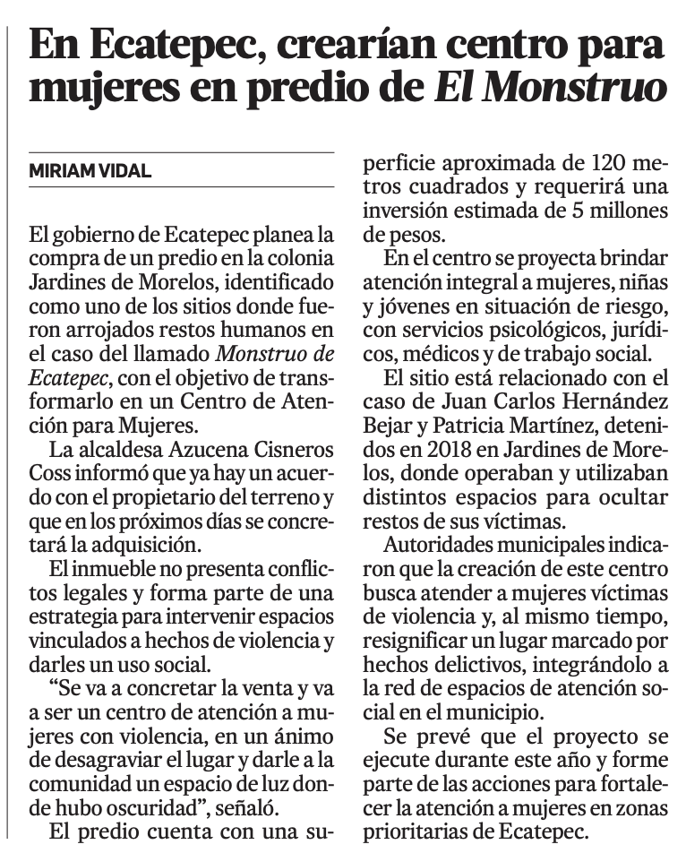 - https://lajornadaestadodemexico.com/planean-comprar-predio-del-monstruo-de-ecatepec-para-centro-de-atencion-a-mujeres/