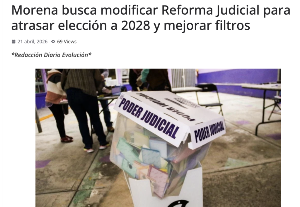 • https://www.diarioevolucion.com.mx/morena-busca-modificar-reforma-judicial-para-atrasar-eleccion-a-2028-y-mejorar-filtros/