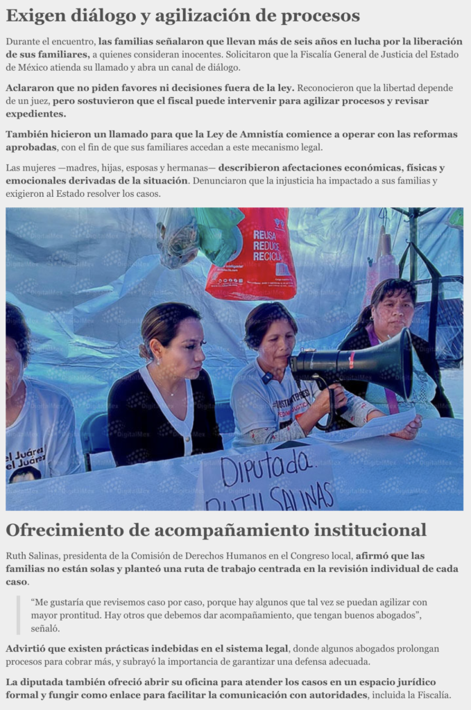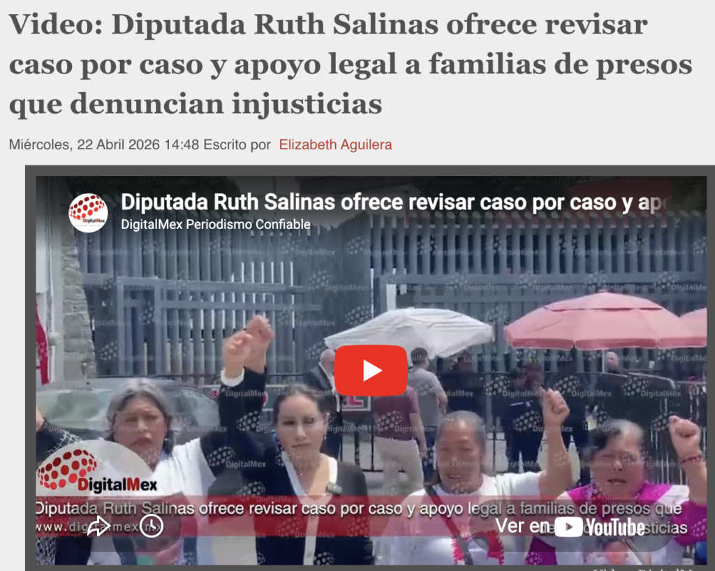 • https://www.digitalmex.mx/politica/story/66739/video-diputada-ruth-salinas-ofrece-revisar-caso-caso-apoyo-legal-familias-presos-denuncian-injusticias