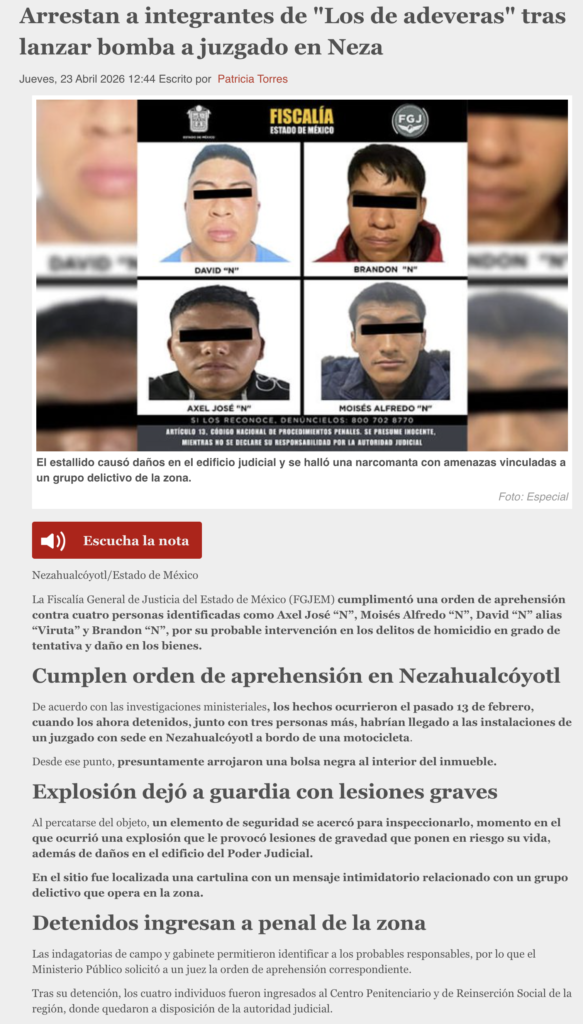 - https://digitalmex.mx/seguridad/story/66779/arrestan-integrantes-los-de-adeveras-lanzar-bomba-juzgado-neza