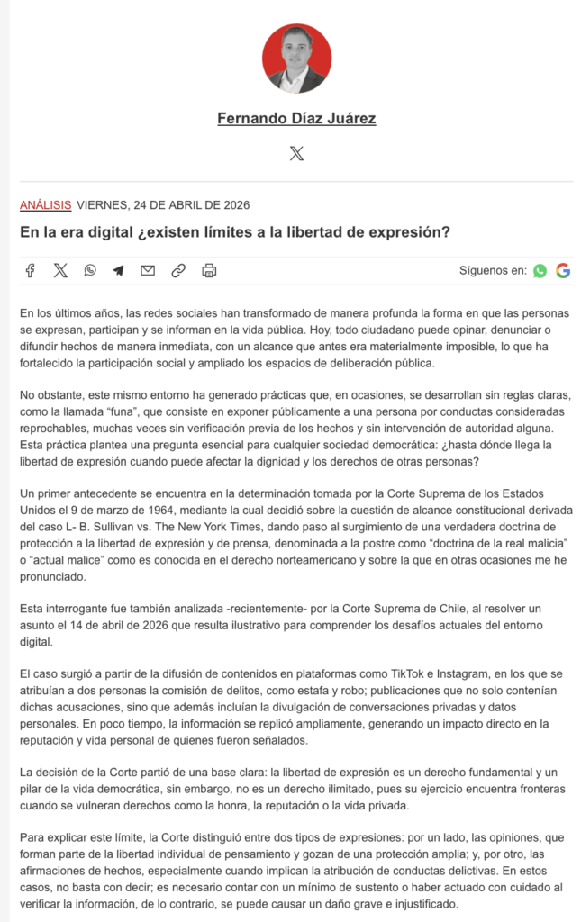 En la era digital ¿existen límites a la libertad de expresión? – Fernando Díaz Juárez