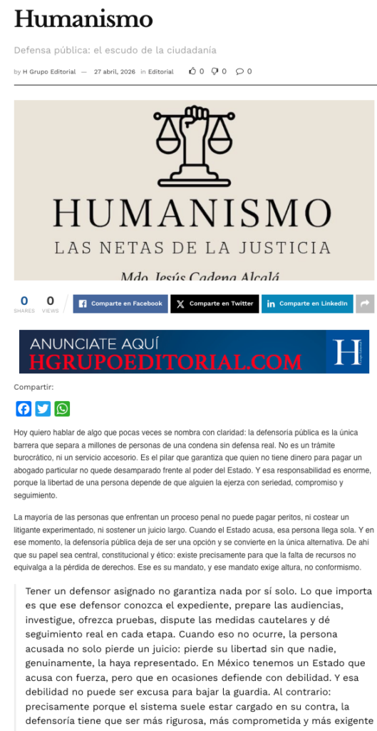 Defensa pública: el escudo de la ciudadanía – Mdo. Jesús Cadena Alcalá