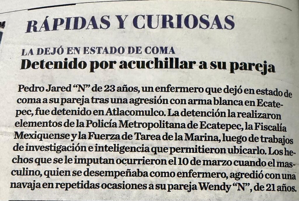 - https://lajornadaestadodemexico.com/detienen-a-enfermero-acusado-de-apunalar-a-su-pareja-en-ecatepec/