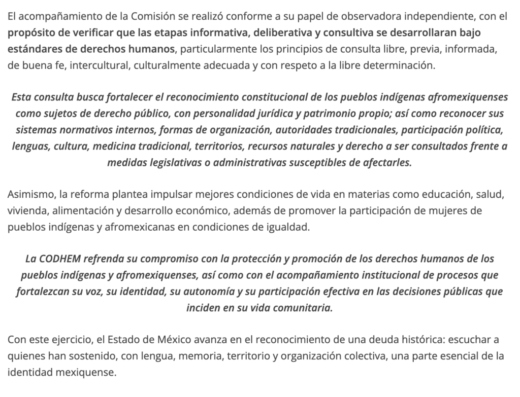 - https://www.diarioevolucion.com.mx/codhem-acompana-y-observa-consulta-indigena-y-afromexicana-en-edomex/