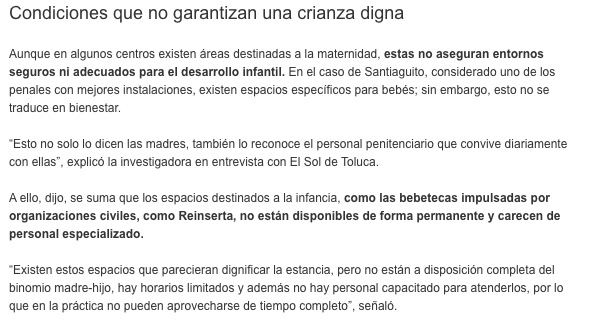- https://oem.com.mx/elsoldetoluca/local/infancias-en-prision-el-riesgo-de-crecer-en-penales-del-edomex-29638593