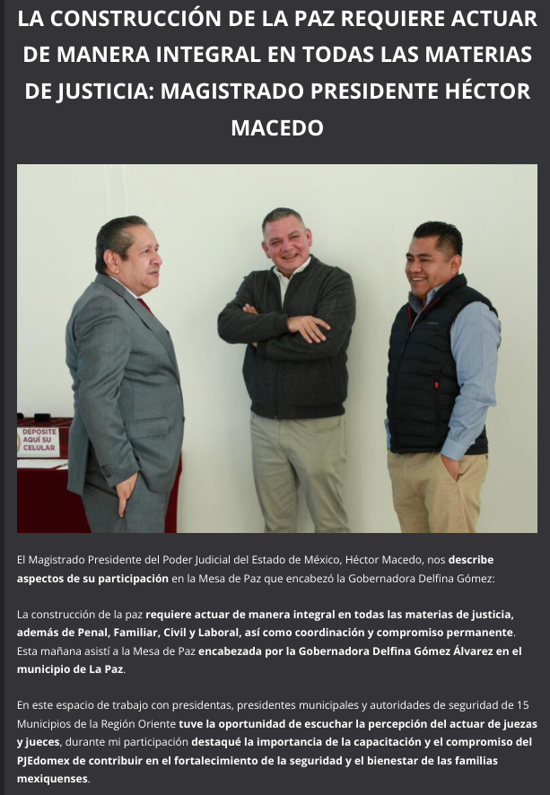 El Magistrado Presidente del Poder Judicial del Estado de México, Héctor Macedo, nos describe aspectos de su participación en la Mesa de Paz que encabezó la Gobernadora Delfina Gómez: