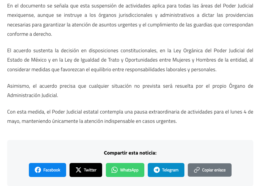 - https://planamayor.com.mx/poder-judicial-del-edomex-suspendera-labores-el-4-de-mayo/