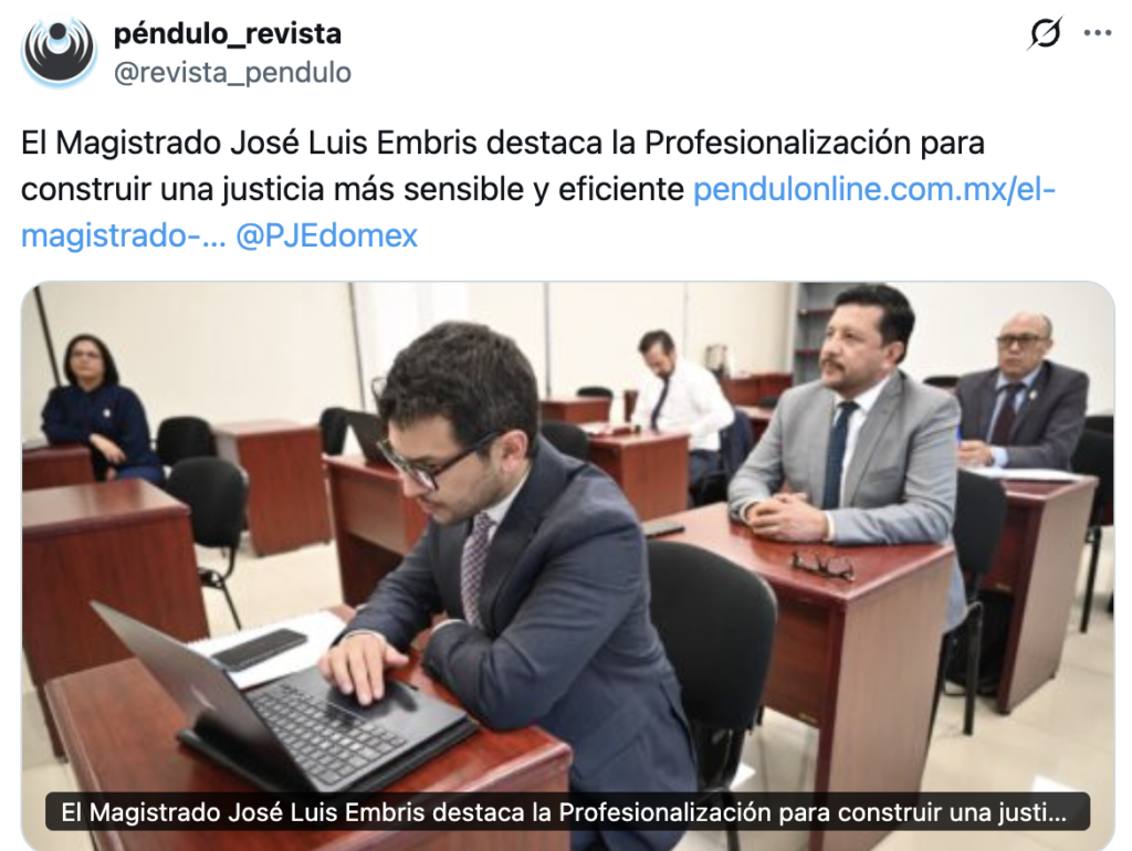 - https://pendulonline.com.mx/el-magistrado-jose-luis-embris-destaca-la-profesionalizacion-para-construir-una-justicia-mas-sensible-y-eficiente/?fbclid=IwY2xjawRcvtNleHRuA2FlbQIxMQBzcnRjBmFwcF9pZBAyMjIwMzkxNzg4MjAwODkyAAEeOaSwE3La1pMV5EpPMdeDAzWMh8Q66szW8mw-4-i-9JInszVm45w4mfVSf2U_aem_i0ModrPDy1_b8cTPIZolNQ