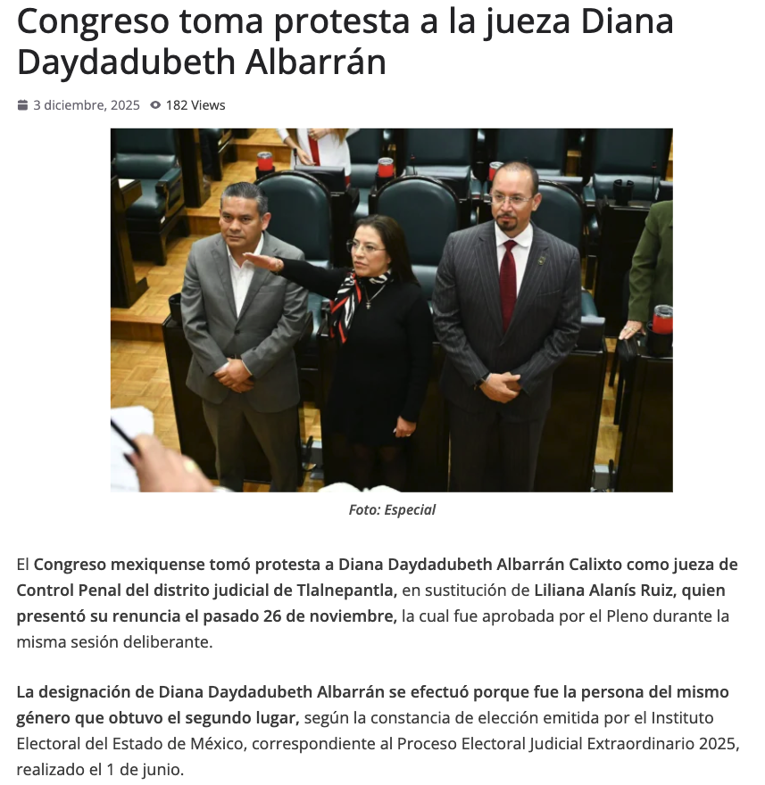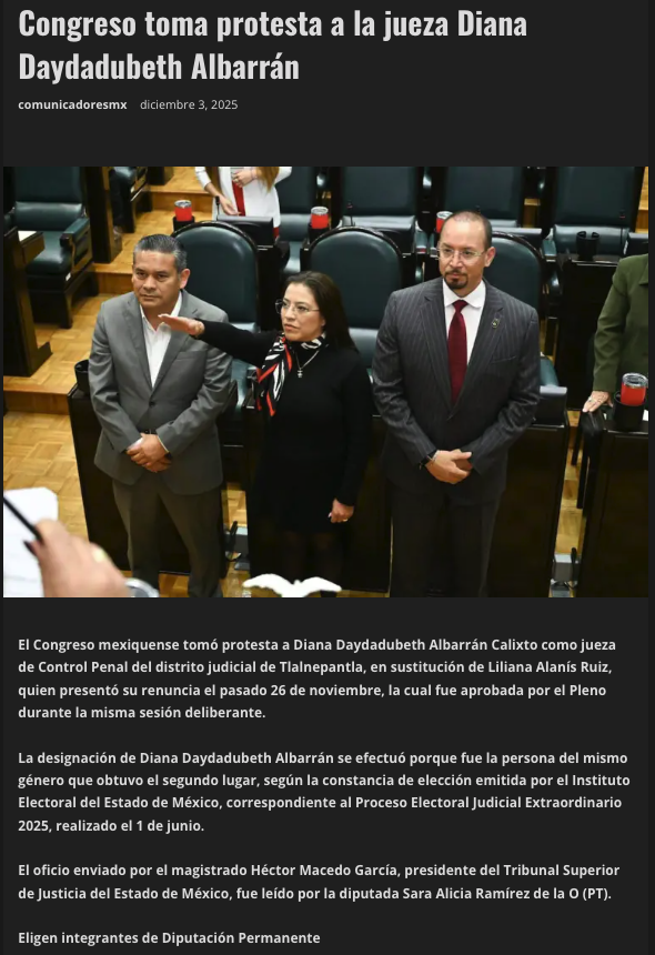 - https://comunicadores.mx/2025/12/03/congreso-toma-protesta-a-la-jueza-diana-daydadubeth-albarran/