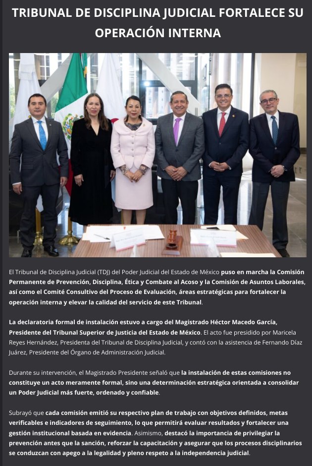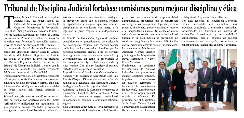 - https://elvalle.com.mx/2026/02/16/tribunal-de-disciplina-judicial-fortalece-comisiones-para-mejorar-disciplina-y-etica/