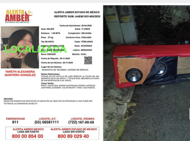 Seguir leyendoOculta dentro de un bafle, fue localizada la adolescente de 17 años Yareth Alexandra, durante un cateo realizado en una vivienda